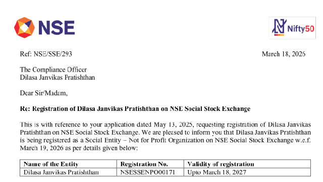Dilasa Janvikas Pratishthan is a Civil Society organization, engaged in implementing sustainable rural development programs by focusing on natural resource management, climate resilient agriculture, model village development includes health/education initiatives, livelihood enhancement and women empowerment. It has treated over 7.82 lakh ha of land under different watershed programs apart from working in water supply, irrigation and aquifer management. Dilasa has created a strong foundation in water management as means to sustainable natural resource management. It has a strong connect with rural community specially the farmers through its various projects therefore, well understands their needs and requirements. The organization is equipped with a highly technical and experienced team which is enabling it to achieve its goal. The organization is aligning its projects with United Nations Sustainable Development Goals (SDG's).
